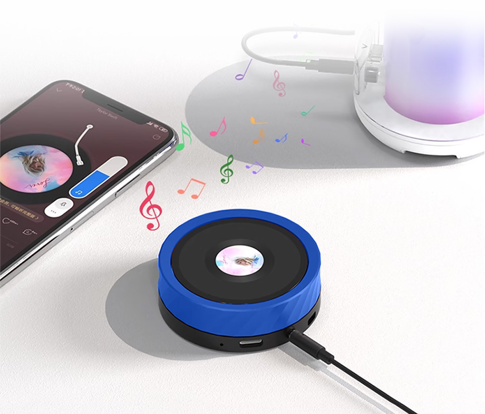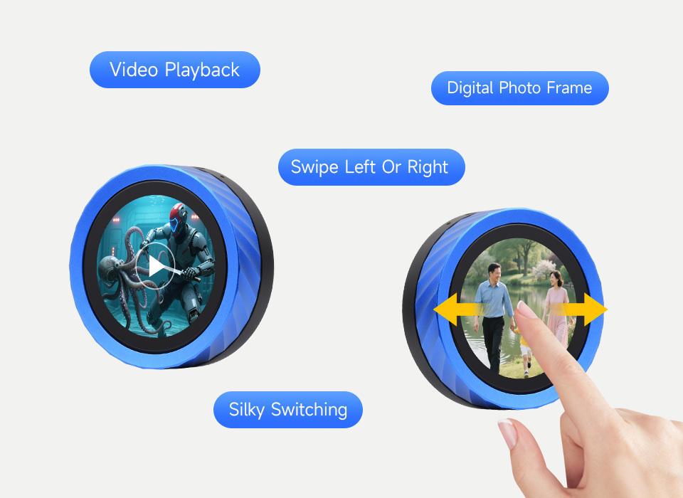 Entre sus aplicaciones, puede funcionar como control de volumen para PC, pantalla secundaria, soporte para temporizador Pomodoro con 3 temas, reproducción de música vía Bluetooth desde smartphone, salida de audio por jack de 3.5mm, reproducción de video, marco digital de fotos, lectura de archivos TXT y visualización en tiempo real de parámetros de CPU y GPU. El micrófono captura sonidos ambientales y los transforma en espectro de audio en tiempo real en la pantalla. Soporta ajuste de retroiluminación, cambio de idioma entre chino e inglés, y conexión Bluetooth para control de volumen de películas y música mediante la perilla.